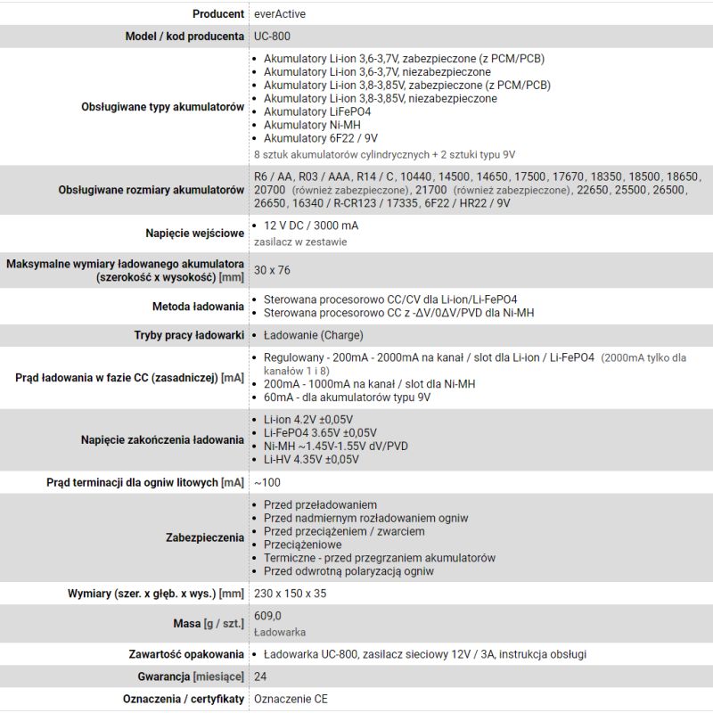 3. EVERACTIVE ŁADOWARKA DO AKUMULATORÓW CYLINDRYCZNYCH LI-ION ORAZ NI-MH UC800