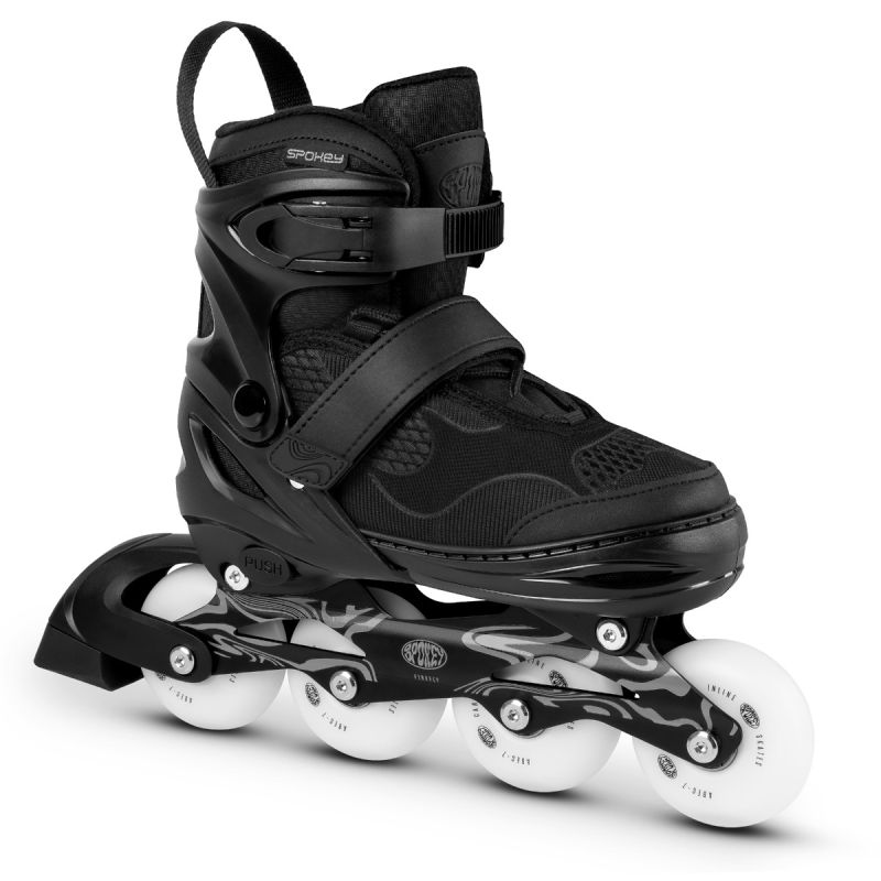 Młodzieżowe rolki z regulowanym butem typu semi-soft, który zapewnia wygodę i dobre dopasowanie. Lekka, aluminiowa płoza zwiększa stabilność i wytrzymałość podczas jazdy. Kółka z poliuretanu (PU) o twardości 82A zapewniają dobrą przyczepność i tłumienie drgań. Wyposażone w świecące diody LED w kółkach, które uruchamiają się podczas jazdy. Łożyska ABEC-7 Carbon gwarantują płynną i cichą jazdę. Hamulec z trwałego tworzywa TPR umożliwia skuteczne hamowanie. Potrójny system zapięcia – klamra, rzep i sznurowadła – zapewnia stabilne trzymanie stopy.   Parametry: But: semi-soft, regulowany Materiał buta: poliester, PP Materiał płozy: aluminium Materiał kółek: PU Twardość kółek: 82A Średnica kółek: 70 mm (35-38) / 72 mm (39-42) Świecące z diodami LED: tak Łożyska: ABEC-7 Carbon Zapięcia: klamra dwusekcyjna, rzep, sznurowadła Rozmiary: 35-38 lub 39-42 Hamulec: TPR Max. waga użytkownika: 100 kg Polecany do: jazdy rekreacyjnej Poziom zaawansowania: początkujący, średniozaawansowany   Informacje dotyczące bezpieczeństwa: Należy stosować środki ochrony indywidualnej. Nie nadaje się dla osób o masie ciała większej niż 60 kg. Nie używać w ruchu ulicznym. Nie do użytku komercyjnego.