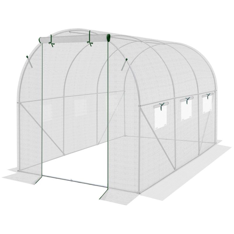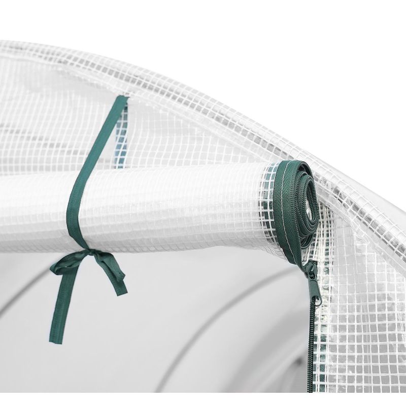 Folia posiada 6 okien z moskitierami i zasłonkami z folii, które chronią przed nadmiarem wilgoci zapewniając jednocześnie optymalny przepływ powietrza i odpowiedni dostęp do światła. Posiada szerokie na 120 cm drzwi zamykane na zamek, które pozwolą wygodnie wychodzić lub wchodzić do środka.