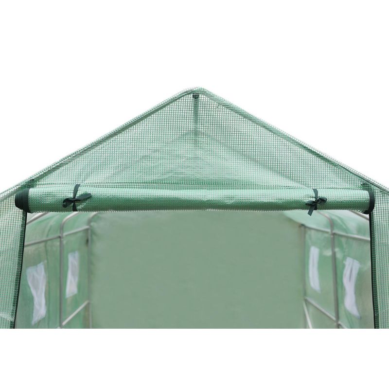 Folia posiada 6 okien z moskitierami i zasłonkami z folii, które chronią przed nadmiarem wilgoci zapewniając jednocześnie optymalny przepływ powietrza i odpowiedni dostęp do światła. Posiada szerokie na 120 cm drzwi zamykane na zamek, które pozwolą wygodnie wychodzić lub wchodzić do środka.
