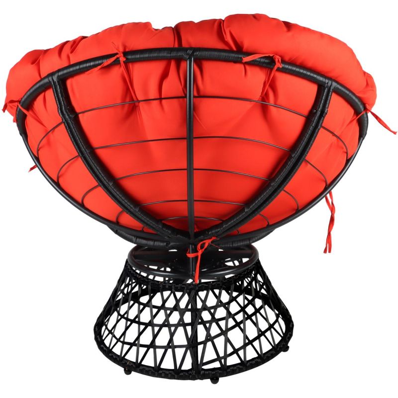 FOTEL OGRODOWY OBROTOWY 360 STOPNI Z PODUSZKĄ CZERWONĄ to wygodne i praktyczne rozwiązanie do relaksu na świeżym powietrzu lub wewnątrz pomieszczeń, które łączy w swojej formie nowoczesny styl i wygodę.
