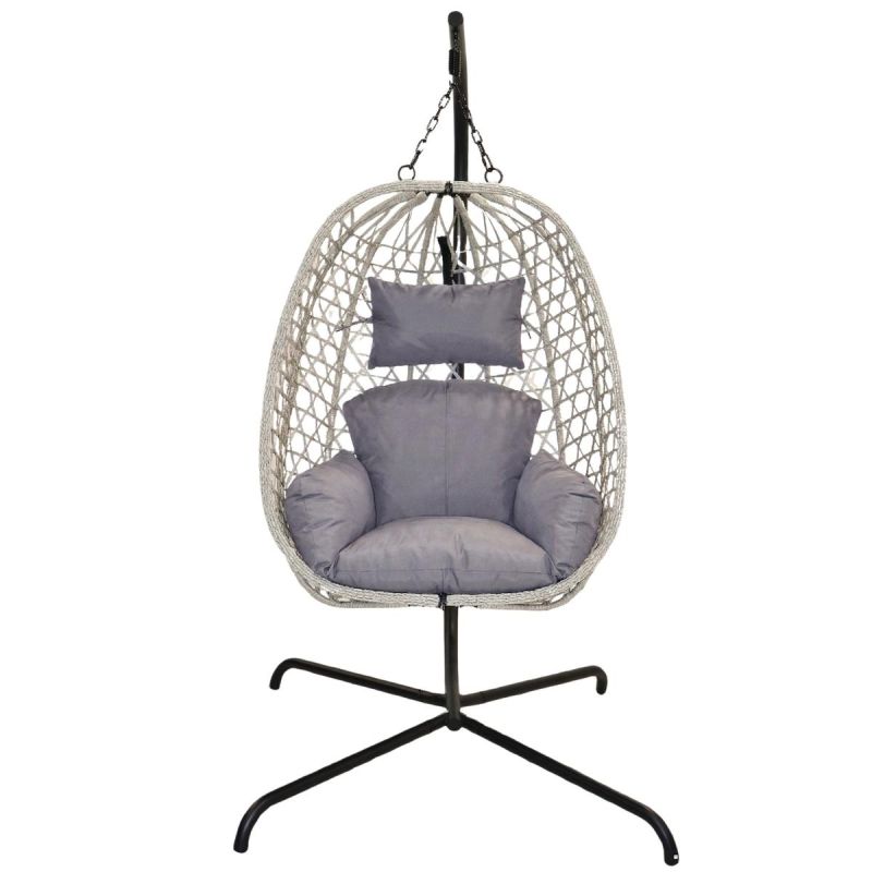 FOTEL WISZĄCY KOKON ZE STELAŻEM 195CM JASNY SZARY 120KG