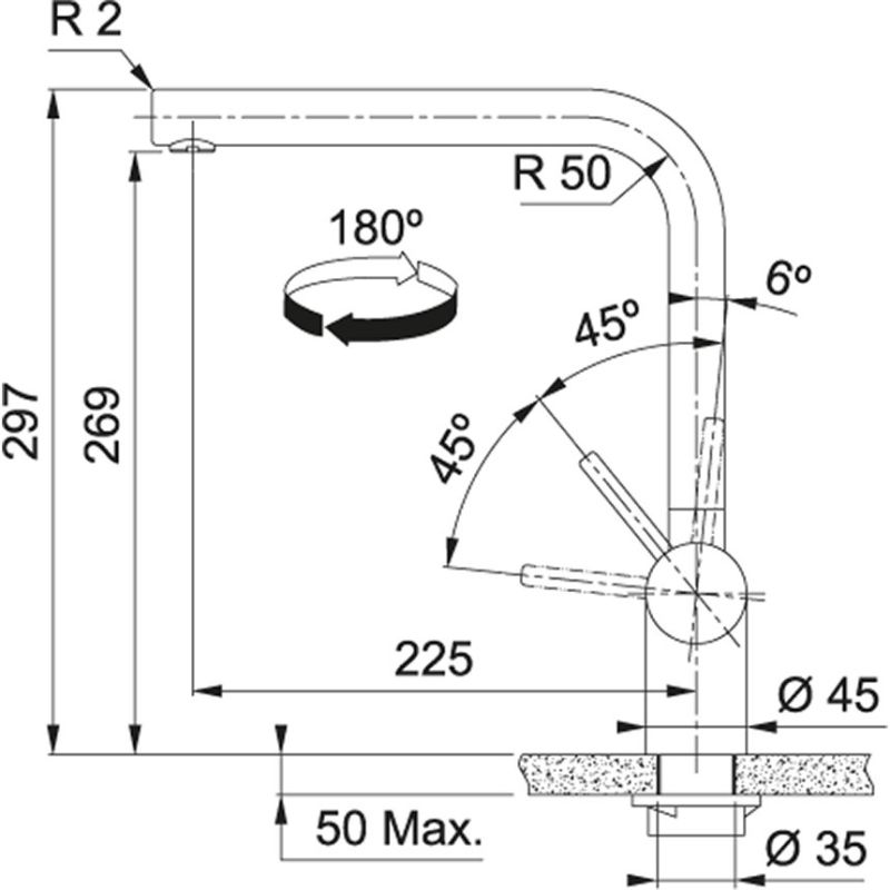 Wysokość powyżej powierzchni osadzenia (maks.): 29,7 cm