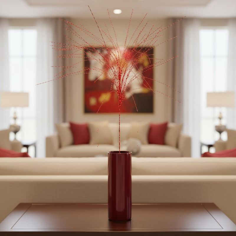 Wystarczy włożyć tą połyskującą czerwoną gałązkę dekoracyjną do wazonu lub stroika, by odmienić aranżację w kilka sekund. Lśniąca powierzchnia pięknie odbija światło i tworzy efekt glamour w domu, biurze czy witrynie sklepowej.