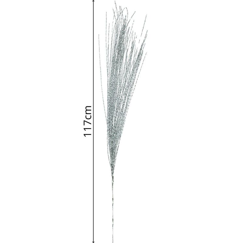 Dodaj blasku i stylu w kilka sekund! Stwórz wyjątkową atmosferę świąt lub wnętrze w stylu glamour dzięki srebrnej gałązce dekoracyjnej 117 cm — lekka, efektowna i gotowa do tworzenia pięknych aranżacji.