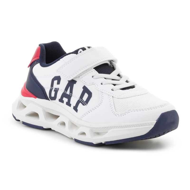 Chłopięce sneakersy GAP San Francisco White/Navy/Red to casualowy model za kostkę zaprojektowany z myślą o wygodzie na co dzień. Produkt występuje jako boys San Francisco Hook & Loop Ankle Sneakers, a jego autentycznie potwierdzone cechy to zapięcie typu hook-and-loop (rzep), trwała cholewka oraz antypoślizgowa podeszwa zapewniająca lepszą przyczepność i stabilność. Wysoka konstrukcja wspiera komfort użytkowania podczas codziennych aktywności, a sportowo-miejski wygląd w zestawieniu bieli, granatu i czerwieni dobrze wpisuje się w dziecięce stylizacje casualowe. Model sprawdzi się do szkoły, na spacer i podczas codziennych zabaw. Opis oparto na dostępnych, autentycznych informacjach o modelu GAP GPK6150100218 i nie rozszerza specyfikacji o niepotwierdzone technologie czy materiały.