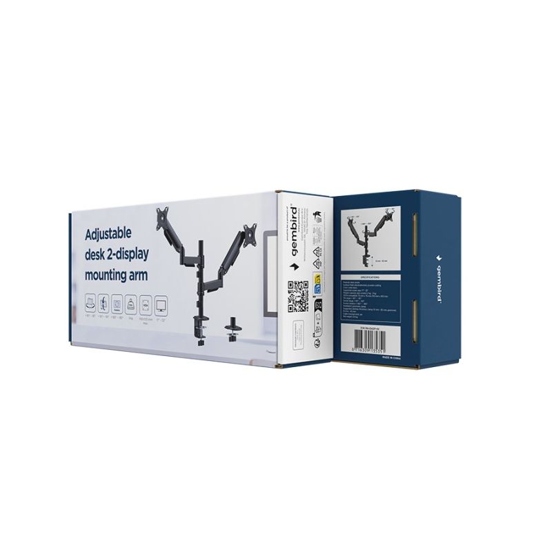 GEMBIRD BIURKOWE, REGULOWANE RAMIĘ/UCHWYT NA DWA MONITORY OD 17" DO 32", OBCIĄŻENIE DO 9 KG