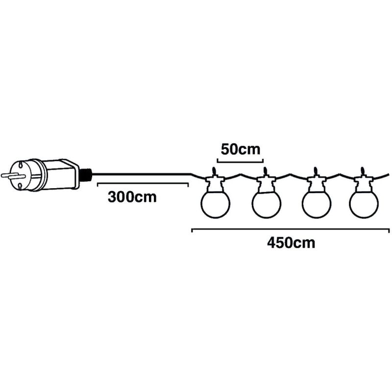 Długość całkowita girlandy to ok. 7,5 metra, sprawia, że świetnie sprawdzi się w różnych aranżacjach – możesz ją rozwiesić wzdłuż tarasu, opleść wokół altany, zamocować na pergoli lub rozciągnąć między drzewami. Równy, 50 cm odstęp pomiędzy żarówkami zapewnia równomierne oświetlenie, nadając przestrzeni harmonijny i elegancki wygląd.