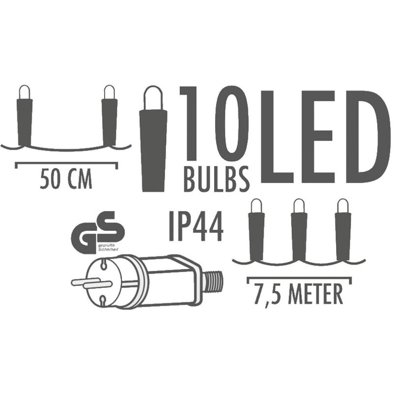 - Ilość żarówek: 10 żarówek z 1 diodą LED
