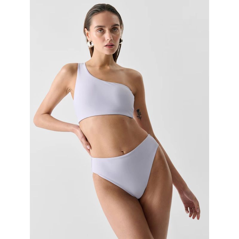 Ten top od bikini, wykonany z miękkiej i elastycznej tkaniny syntetycznej, ma unikalny krój na jedno ramię. Jest wyposażony w wyjmowane wkładki umożliwiające indywidualne wsparcie. Brak zapięcia dodaje jej eleganckiej estetyki, a gładka wyściółka gwarantuje wygodne dopasowanie.