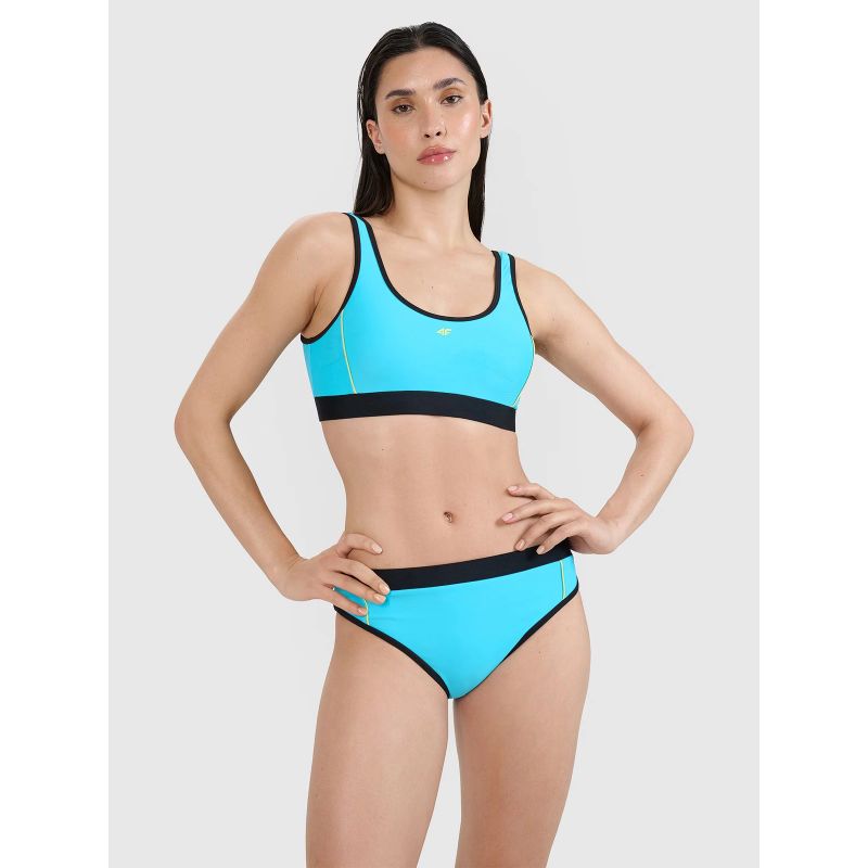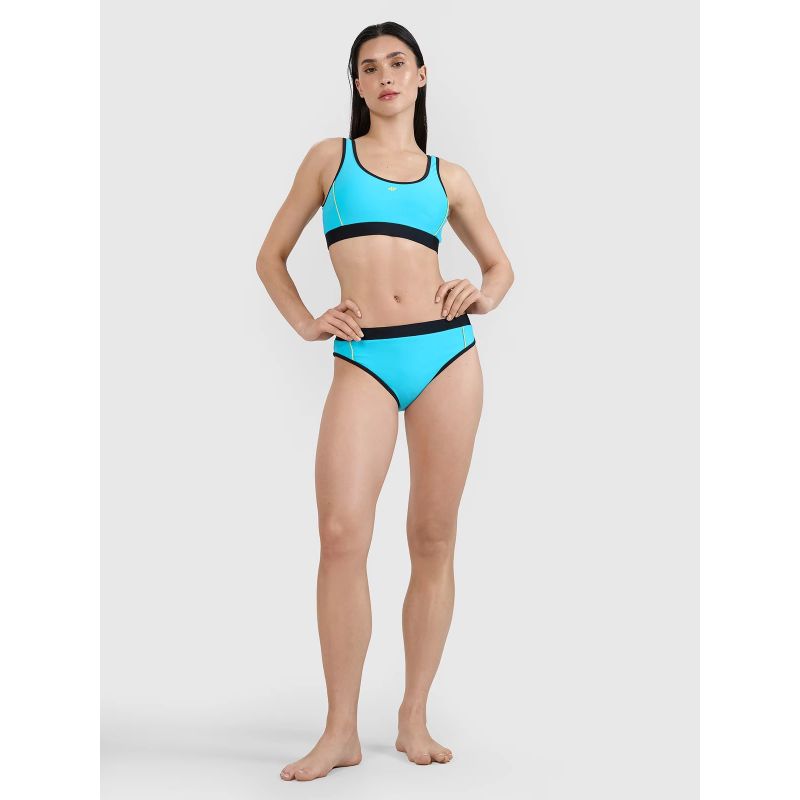 Wyrazisty design z blokami kolorów nadaje topowi nowoczesny i sportowy wygląd, który świetnie komponuje się z jednolitymi dołami od bikini.