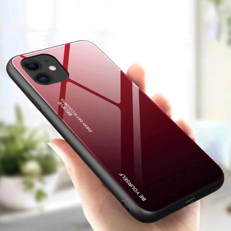Gradient Glass etui pokrowiec nakładka ze szkła hartowanego iPhone 12 mini czarno-czerwony