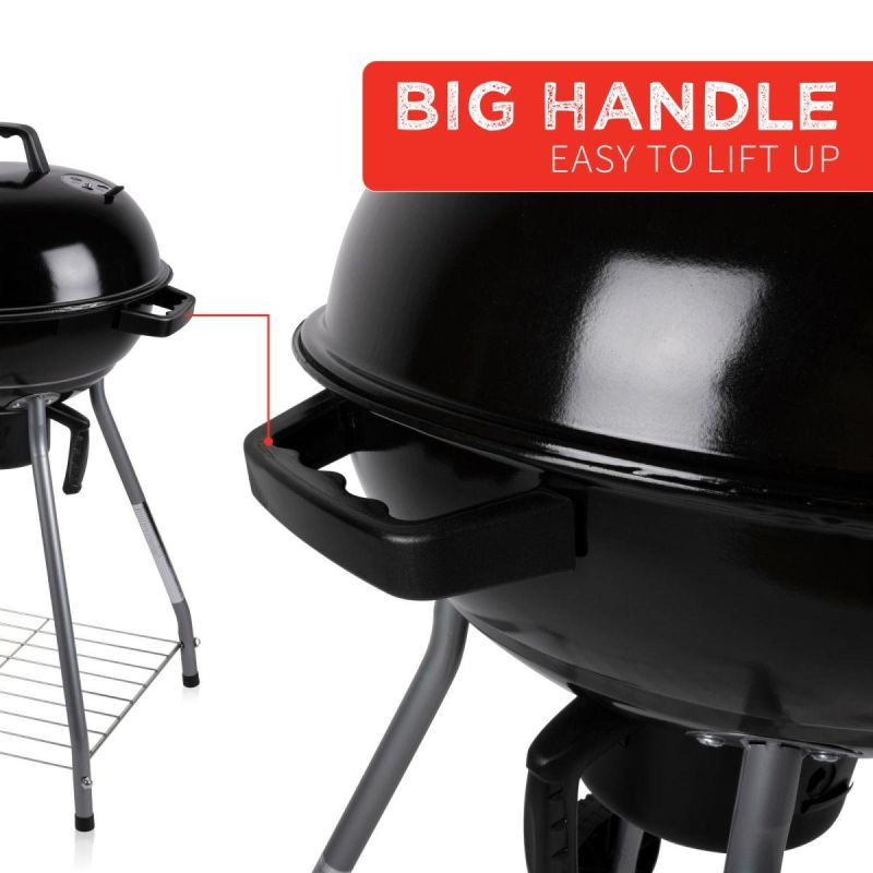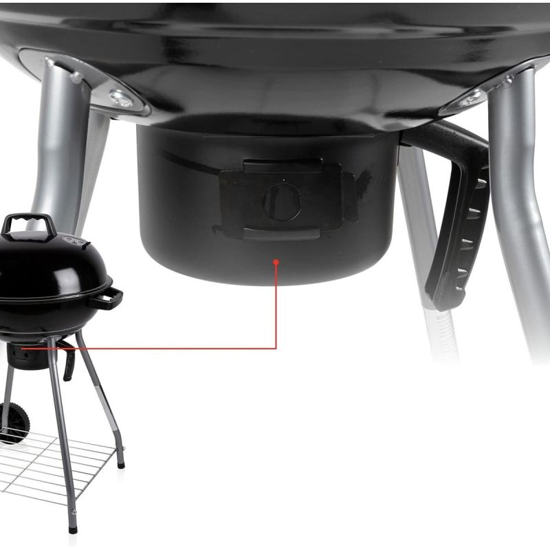 GRILL OGRODOWY KULISTY REX STALOWY 46CM Z POPIELNIKIEM