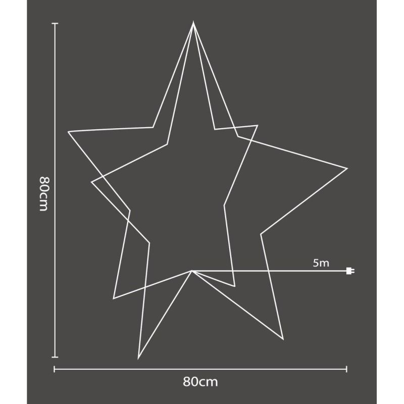 GWIAZDA 3D DEKORACYJNA STOJĄCA 120LED RGB 80CM wyposażona jest w 120 diod LED RGB, które emitują żywe, zmieniające się kolory, stworzy nastrojową atmosferę. Dzięki unikalnej konstrukcji 3D gwiazda jest widoczna z każdej strony, co czyni ją idealną zarówno do wnętrz, jak i na zewnątrz. Zawieś ją w oknie, na tarasie lub w ogrodzie, aby dodać świątecznego blasku i zachwycić gości.
