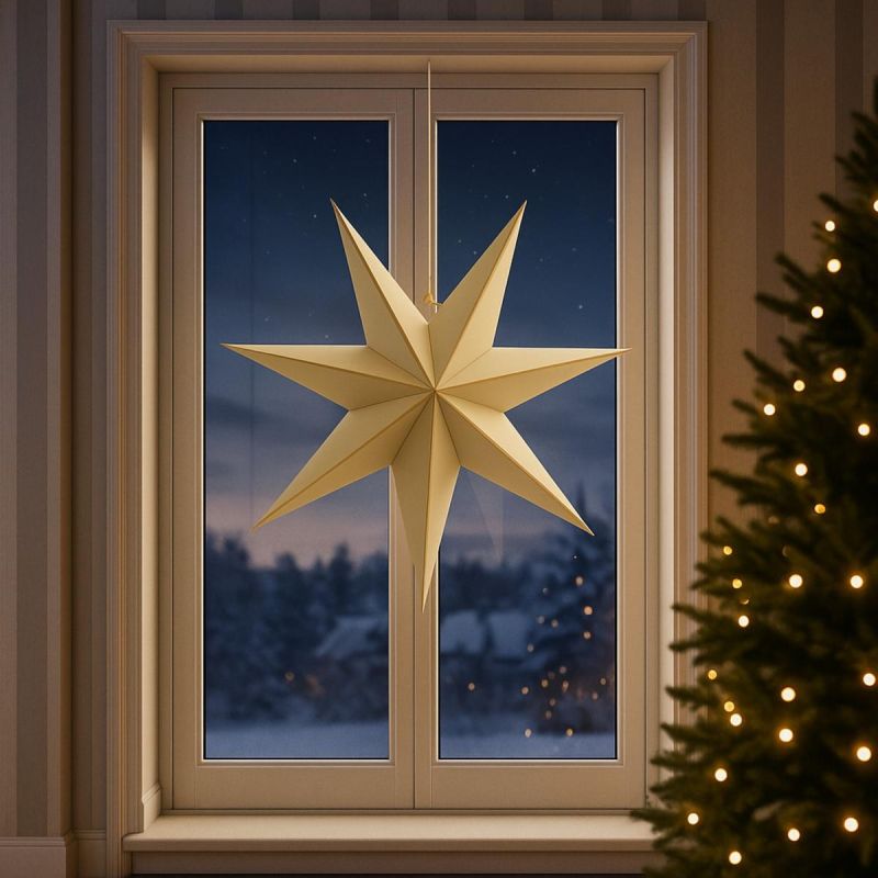 Postaw na naturalną elegancję w wielkim formacie! Beżowa gwiazda MICA 75 cm z papieru FSC to dekoracja, która zachwyca formą i spokojem – święta w stylu eko!