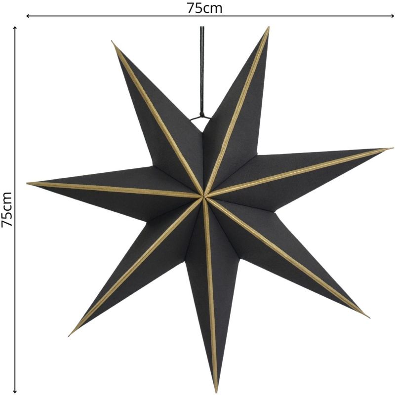 GWIAZDA DEKORACYJNA WISZĄCA PAPIEROWA FSC 18x75CM CZARNA 7 RAMION MICA