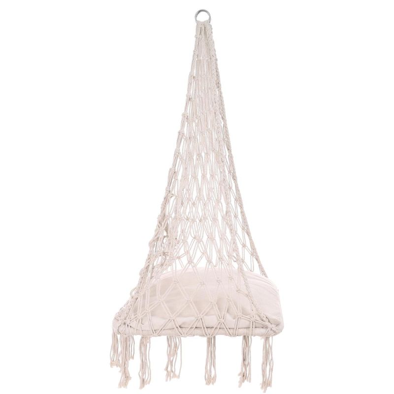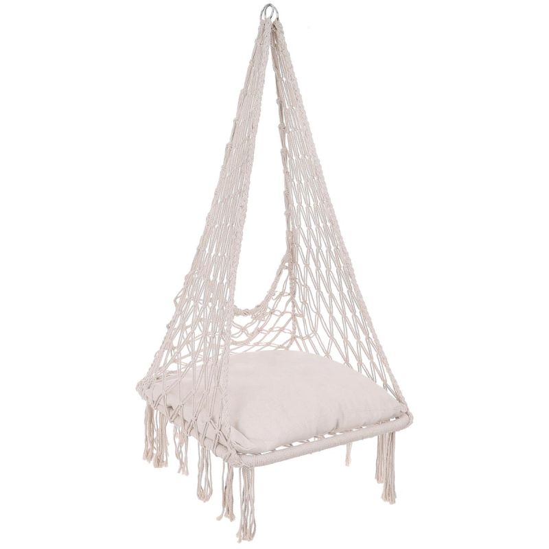 HAMAK AŻUROWY FOTEL WISZĄCY BOCIANIE GNIAZDO 60x60x150CM Z PODUSZKĄ ECRU