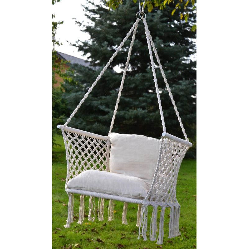 Atrakcyjna gama kolorystyczna, specjalne recznie wykonane sploty oraz ozdobne frędzle w stylu MAKRAMY dodadzą uroku każdej aranżacji. Wykorzystasz go przez cały rok, wiosną i latem na zewnątrz, a jesienią i zimą w domu. Z naszym HAMAKIEM AŻUROWYM relaks w domu lub na świeżym powietrzu to czysta przyjemność! Szerokie siedzisko i miękka poduszka zapewnią maksymalny wypoczynek w zaciszu przydomowego ogródka i nie tylko. System mocowania pozwoli Ci na spokojne bujanie się, co dodatkowo pobudzi twoje zmysły i ukoi nerwy.