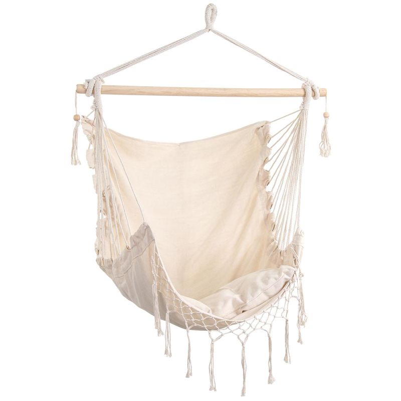 HAMAK FOTEL BRAZYLIJSKI MIAMI Z FRĘDZELKAMI 130X100CM + 2 PODUSZKI 40X40CM BEŻOWY