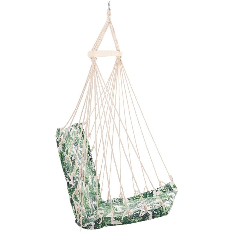 HAMAK FOTEL WISZĄCY BRAZYLIJSKI NATURA JUNGLE LIGHT to doskonały wybór na leniwe, letnie popołudnie w ogrodzie i nie tylko, możesz z niego korzystać również w domu na tarasie lub balkonie. Wystarczy zamontować odpowiedni hak podpiąć hamak i rozpocząć relaks. Wysokiej jakości materiał, wszyte w oparcie i siedzenie poduszki z pianki i solidna konstrukcja, o nośności do 120 kg zapewnią Ci bezpieczeństwo oraz niezwykłą wygodę. Wypoczywaj na całego w naszym wygodnym i stabilnym hamaku fotelu brazylijskim. Zamień kawałek ogrodu lub tarasu w oazę ciszy i spokoju, bo tym hamakiem, relaks na świeżym powietrzu to czysta przyjemność!