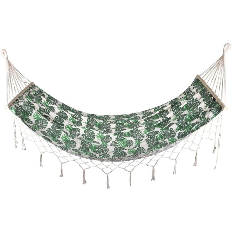 HAMAK OGRODOWY 1 OSOBOWY 200X100CM Z DRĄŻKIEM I Z FRĘDZLAMI MIAMI NATURA JUNGLE