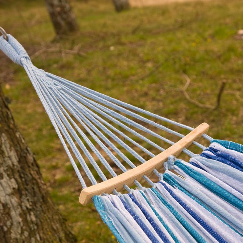 - Hamak sprawdzi się podczas wypoczynku w ogrodzie, na campingu.