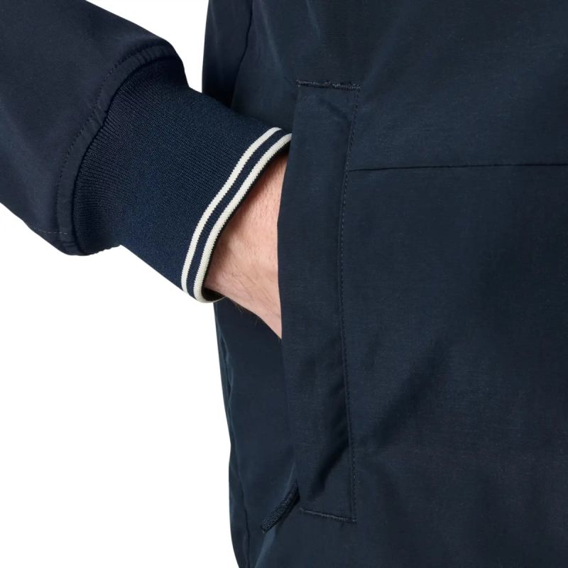 Męska kurtka bomberka Marine została zaprojektowana do noszenia na co dzień wiosną, latem i wczesną jesienią. Dzięki trwałemu, hydrofobowemu wykończeniu (DWR) zapewnia lekką wiatroszczelność i wodoodporność, dzięki czemu idealnie nadaje się na nieprzewidywalną pogodę. Klasyczny krój bomberki o klasycznym, marynistycznym kroju zapewnia wszechstronność, idealnie komponując się z codziennymi lub półformalnymi stylizacjami. Lekka, a jednocześnie funkcjonalna, kurtka idealnie sprawdzi się podczas porannych dojazdów do pracy, weekendowych wypadów i wieczornych spacerów.