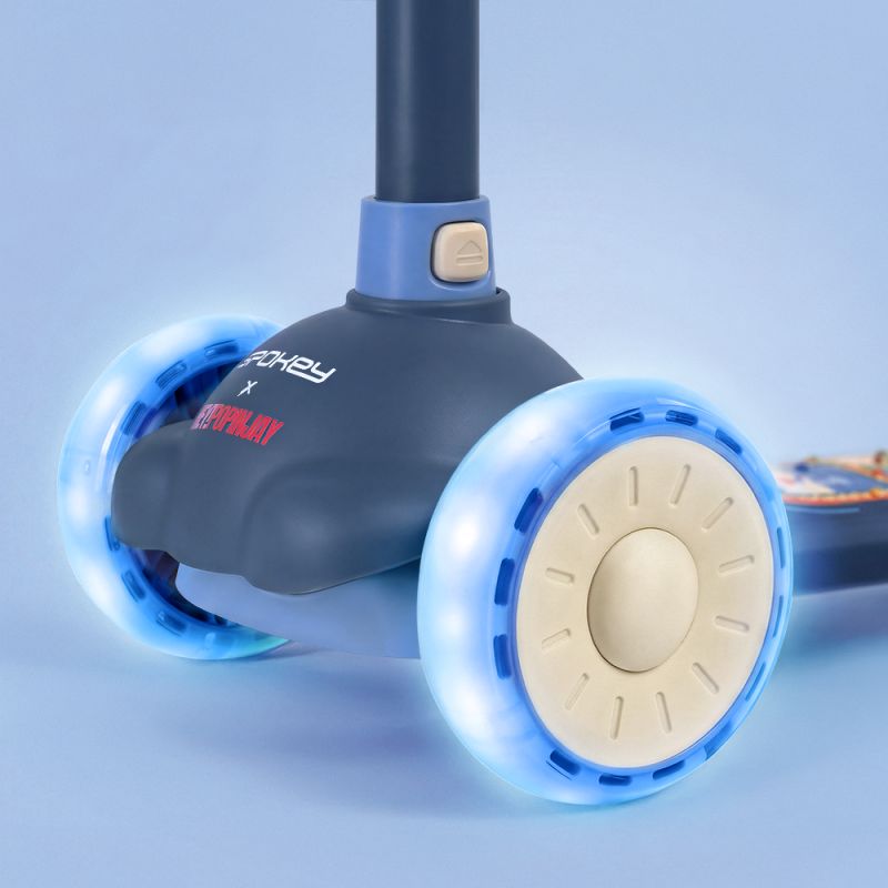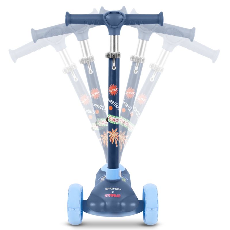 Trójkołowa hulajnoga balansowa zaprojektowana we współpracy z polską marką Hey!Popinjay. Ozdobiona kolorowym nadrukiem, który przyciąga wzrok i dodaje charakteru. Lekka konstrukcja (2,1 kg) z tworzywa sztucznego i stali zapewnia stabilność i wygodę użytkowania. Koła z trwałego poliuretanu (przód: 110 mm, tył: 76 mm) gwarantują płynną jazdę. Przednie kółka z wbudowanymi diodami LED świecą podczas jazdy, zwiększając widoczność i zabawę. Regulowana kierownica (63 - 68 - 73 cm) umożliwia dopasowanie hulajnogi do wzrostu dziecka. Wyposażona w tylny hamulec nożny i składaną konstrukcję ułatwiającą przechowywanie. Parametry: Materiał: plastik, stal Materiał kół: PU Średnica kół: 110 mm (przednie z oświetleniem LED), 76 mm (tylne) Świecące z diodami LED: tak, przednie Łożyska: ABEC-5 Wymiary hulajnogi: 51 × 26 × 73 cm Wymiary po złożeniu: 55 x 30 x 16 cm Regulacja wysokości kierownicy: 63 - 68 - 73 cm Hamulec: nożny (tylny) Waga hulajnogi: 2,1 kg Max. waga użytkownika: 50 kg Norma bezpieczeństwa: EN 71 Polecany do: jazda rekreacyjna Poziom zaawansowania: początkujący Informacje dotyczące bezpieczeństwa: Należy stosować środki ochrony indywidualnej. Nie nadaje się dla dzieci o masie ciała większej niż 50 kg. Do stosowania pod nadzorem osoby dorosłej. Hulajnoga nieodpowiednia dla dzieci poniżej 3 lat z uwagi na niewystarczające zdolności motoryczne. Nie używać w ruchu ulicznym.
