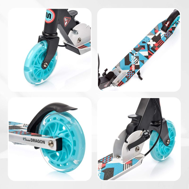 Stylowy prezent na każdą okazję - dzięki swojemu atrakcyjnemu designowi i świecącym kółkom , hulajnoga Meteor Dragon to doskonały wybór na prezent, który zachwyci każde dziecko, ceniące aktywność na świeżym powietrzu.