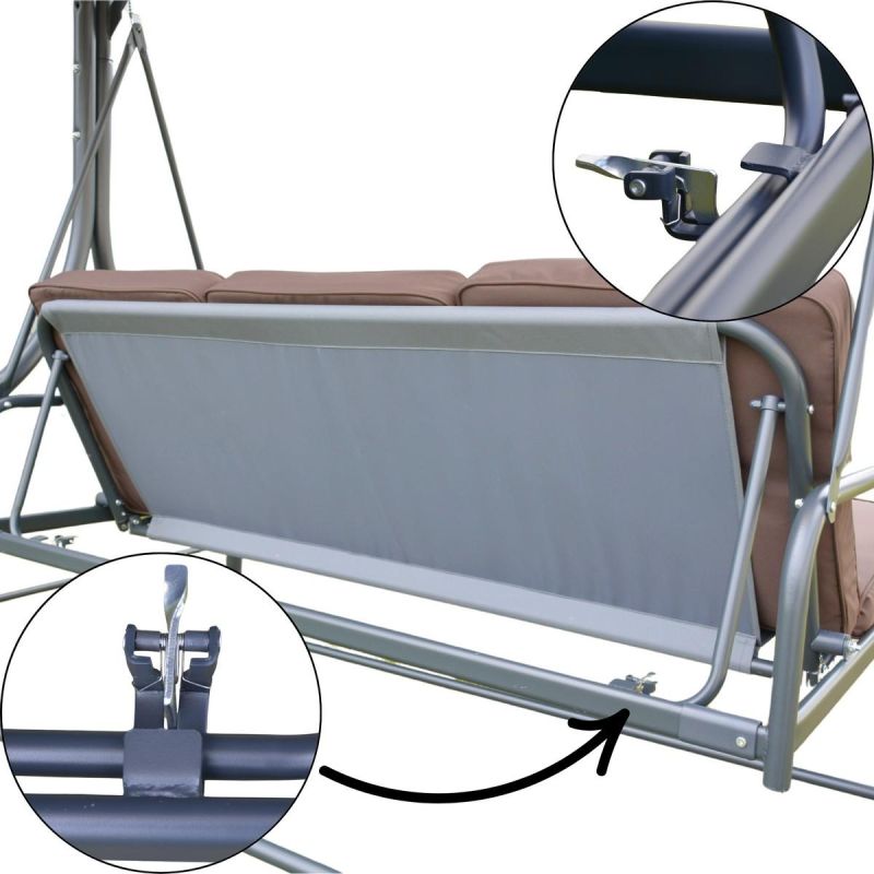 Możliwość rozłożenia oparcia do pozycji leżanki, to wyjątkowa funkcjonalność, która pozwala cieszyć się relaksem na leżąco. Idealna do opalania, drzemki czy spokojnego wypoczynku po ciężkim dniu. Dzięki temu rozwiązaniu huśtawka staje się prawdziwą strefą komfortu w Twoim ogrodzie.