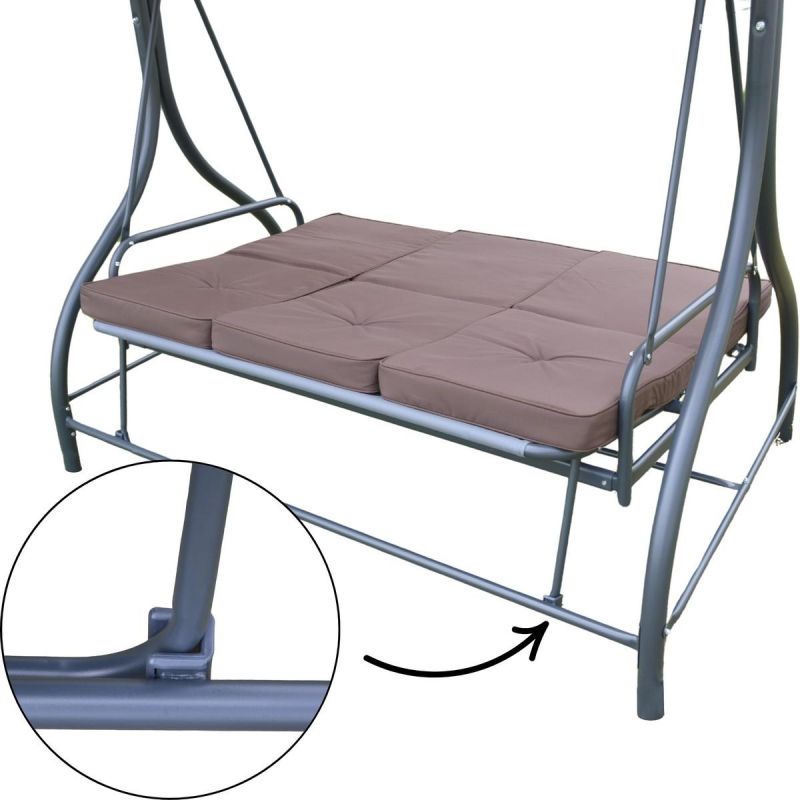 Huśtawka została zaprojektowana z myślą o maksymalnym komforcie użytkowania. Jej przestronne siedziska i poduszki z wypełnieniem z waty poliestrowej o grubości 7 cm, pozwalają na swobodne wypoczywanie w pozycji siedzącej lub lekko odchylonej, a delikatny ruch bujania działa relaksująco i odprężająco.