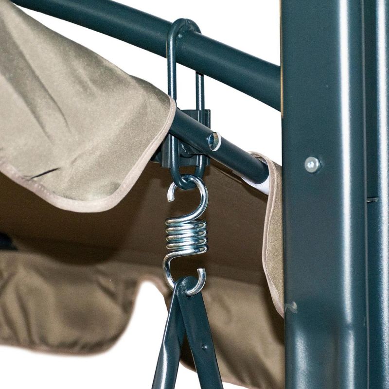 Maksymalne obciążenie 300 kg, zapewnia bezpieczeństwo i wygodę dla trzech osób jednocześnie. Dzięki solidnej, stalowej konstrukcji jest wyjątkowo stabilna i trwała, co sprawia, że nadaje się zarówno do codziennego użytku, jak i rodzinnych spotkań na świeżym powietrzu.