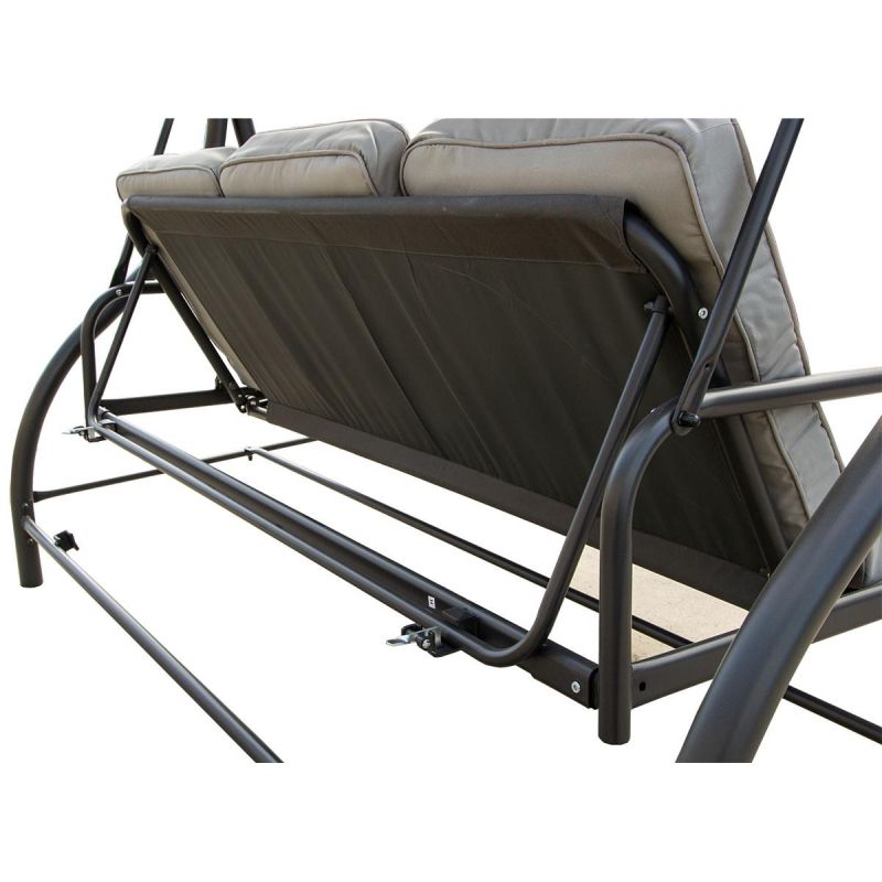 Szeroki daszek huśtawki uchroni Cię w upalny dzień przed nadmiernym słońcem i zapewni odrobinę cienia. Stabilna stalowa konstrukcja utrzyma aż do 3 osób o maksymalnej łącznej wadze ok. 250 kg. Jest łatwa w montażu i w utrzymaniu czystości. Dzięki możliwości rozłożenia siedziska do pozycji łóżka, w każdym momencie możesz wygodnie wypocząć na niej leżąco ucinając sobie poobiednią drzemkę. Miękkie zdejmowane 3 poduszki możesz zastąpić kocem lub materacem, wszystko zależy od twojej wyobraźni.