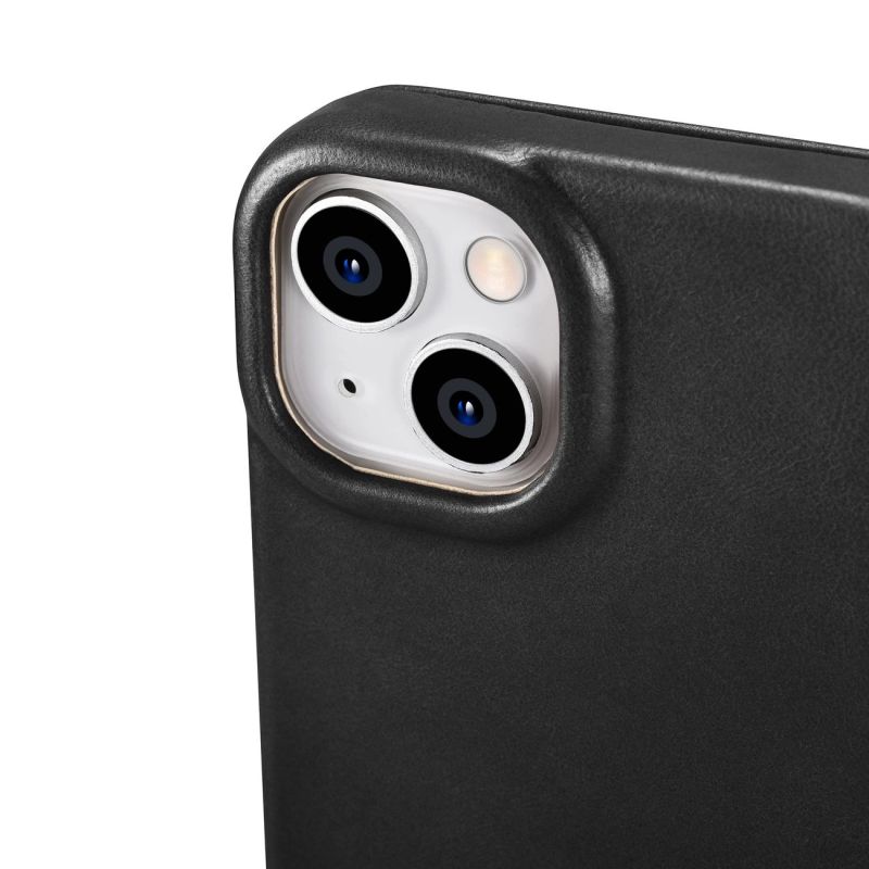 iCarer CE Oil Wax Premium Leather Folio Case skórzane etui iPhone 14 Plus z klapką magnetyczne MagSafe czarny (AKI14220707-BK)