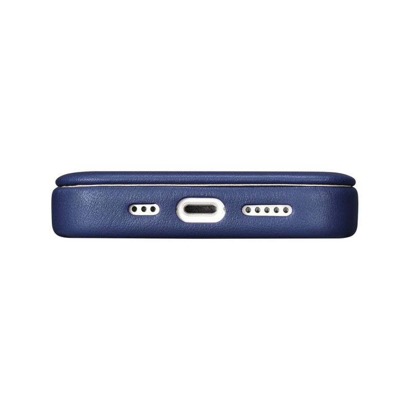 iCarer CE Premium Leather Folio Case skórzane etui iPhone 14 Plus z klapką magnetyczne MagSafe niebieski (WMI14220715-BU)