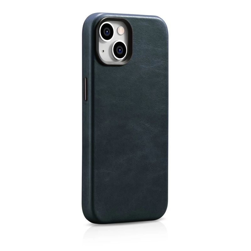 iCarer Oil Wax Premium Leather Case skórzane etui iPhone 14 Plus magnetyczne z MagSafe ciemnoniebieski (WMI14220703-BU)