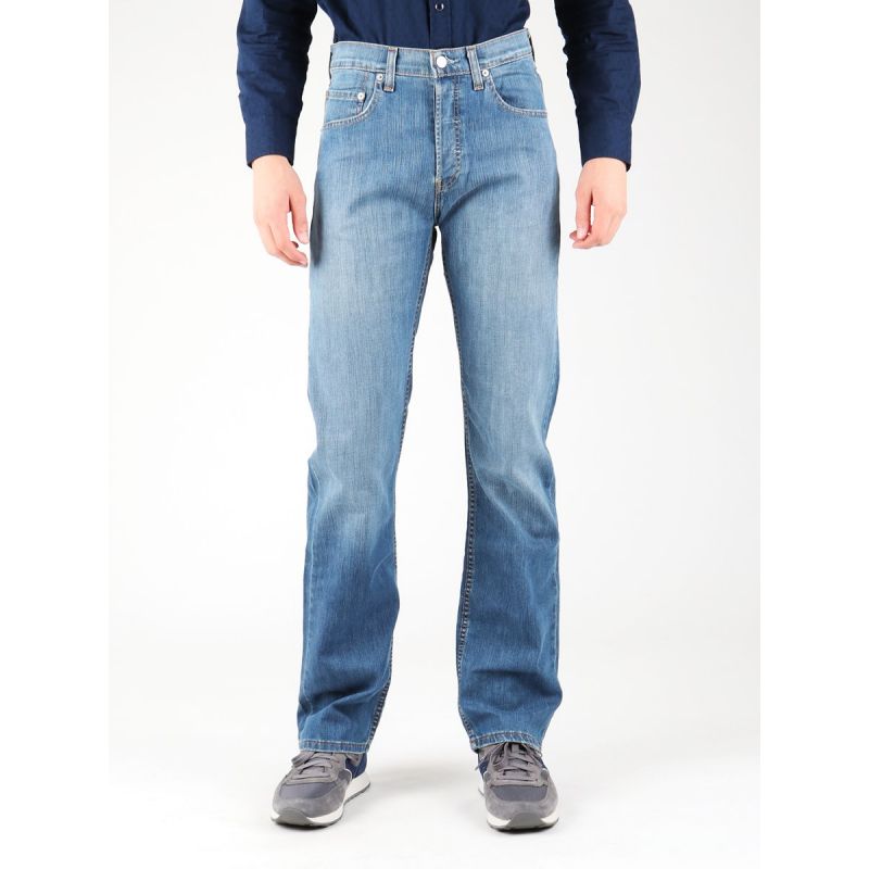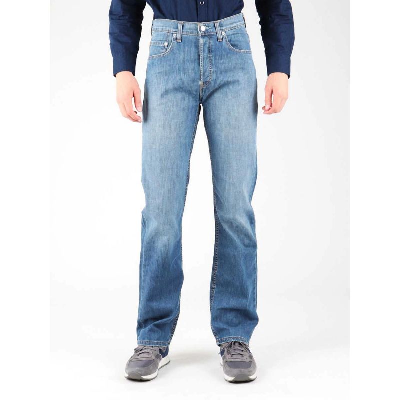 Męskie jeansy z prostą nogawką i zapięciem na guziki. Duże kieszenie z przodu i z tyłu. Na pasku z tyłu wstawka z logo firmy Levis. Materiał: 88% bawełna/ 12% elastomultiester