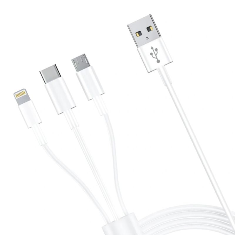 Accessories - 3MK Cable USB type A do USB C/Micro USB/Lightning 1,2m 20V/2.4A 15W White MM - global