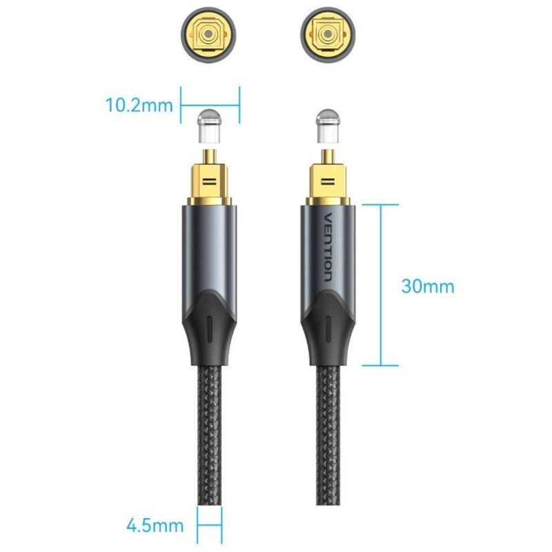 Kabel audio optyczny Vention w oplocie z aluminiowym złączem 5m czarny