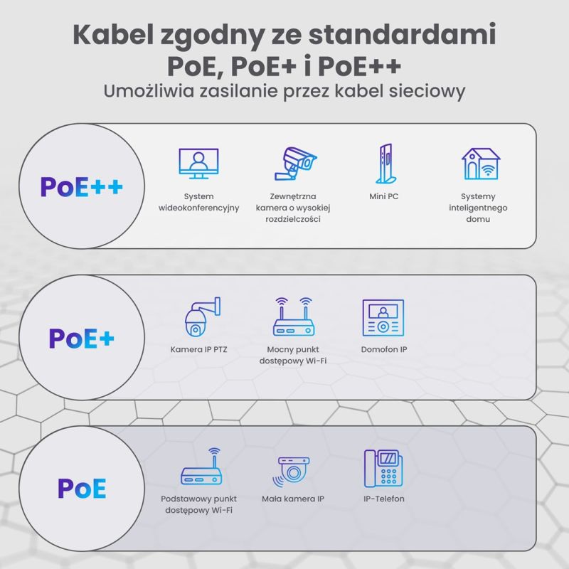 • Izolacja kabla: U/UTP (UTP)