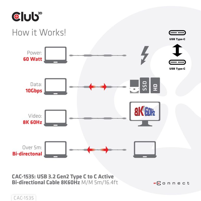 8. Kabel USB Club3D CAC-1535 (USB 3.2 Gen2 Type C