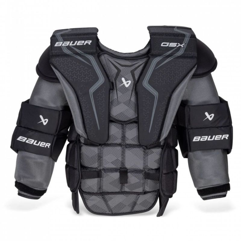 Kamizela bramkarska Bauer GSX '23 Sr Przeznaczona dla początkujących lub grająco rekreacyjnie bramkarzy. Lekka, tradycyjna konstrukcja pomoże Ci poczuć się komfortowo między słupkami i rozpocząć obrone bramki. Kluczowe Cechy Kamizelka Bauer S23 GSX to opcja najwyższej klasy dla bramkarzy hokejowych poszukujących doskonałej ochrony, komfortu i mobilności na lodzie. Zaprojektowana, aby wytrzymać wymagania gry na wysokim poziomie i zapewnić bramkarzowi pewność siebie oraz spokój umysłu potrzebne do osiągnięcia najlepszych wyników. Ulepszenia w kwestii wagi – 5% lżejsza niż poprzedni model Bauer GSX.