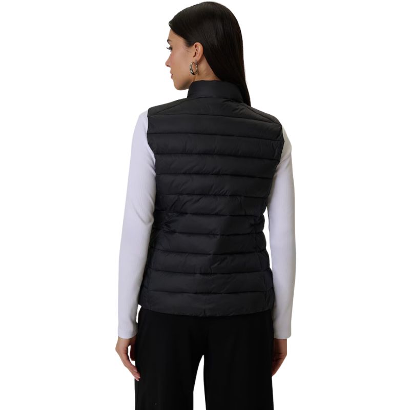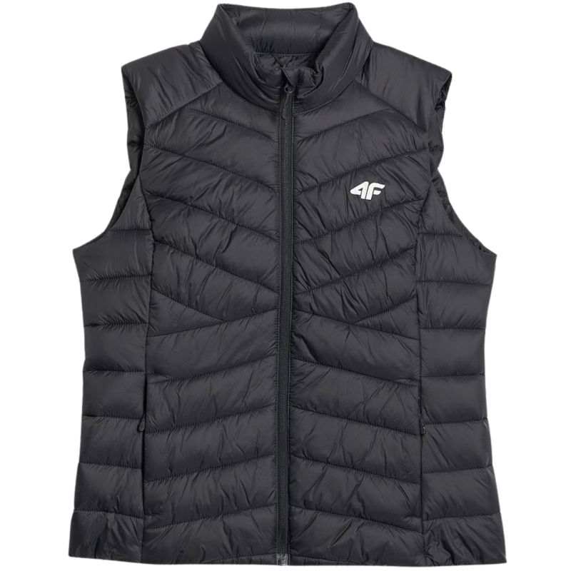 Kamizelka damska 4F F347 głęboka czerń 4FWSS26TVJAF347 20S Lekki bezrękawnik na przejściowe dni, który zapewnia komfort cieplny i pełną swobodę ruchów. Hydrofobowe wykończenie chroni przed lekką wilgocią, a syntetyczna ocieplina utrzymuje ciepło bez obciążenia i jest łatwa w pielęgnacji. Pikowana konstrukcja stabilizuje wypełnienie i nadaje nowoczesny wygląd. Zamek na całej długości ułatwia użytkowanie, a dwie kieszenie na zamek zapewniają bezpieczne przechowywanie drobiazgów. Dane techniczne:· Materiał główny: 100% poliester· Podszewka: 100% poliester· Wypełnienie: 100% poliester· Hydrofobowa impregnacja - zabezpiecza materiał przed wchłanianiem wody i niespodziewanym deszczem· Lekka ocieplina poliestrowa - zapewnia optymalne ciepło bez uczucia ciężaru i łatwo się pielęgnuje· Pikowanie w jodełkę i poziome panele - łączy modny wygląd z równomiernym rozkładem ocieplenia· Jednokierunkowy zamek główny- pozwala łatwo założyć lub zdjąć bezrękawnik· 2 boczne kieszenie na zamek · Regularny krój - wygodnie układa się na sylwetce i nie krępuje ruchów