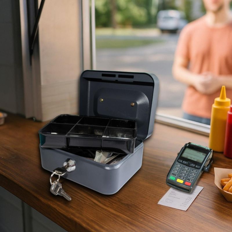 Dzięki wyjmowanej wkładce z 6 przegródkami, kasetka pozwala na łatwe posegregowanie banknotów i bilonu, co sprawia, że jest idealnym wyborem dla sklepów, biur oraz użytkowników domowych. Wkładka wykonana jest z wytrzymałego tworzywa ABS, co czyni ją odporną na uszkodzenia i łatwą w czyszczeniu.