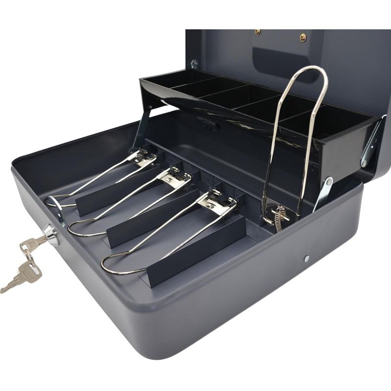 Dzięki wkładce z pięcioma przegródkami, kasetka pozwala na łatwe posegregowanie banknotów i bilonu, co sprawia, że jest idealnym wyborem dla sklepów, biur oraz użytkowników domowych. Wkładka wykonana jest z wytrzymałego tworzywa ABS, co czyni ją odporną na uszkodzenia i łatwą w czyszczeniu.