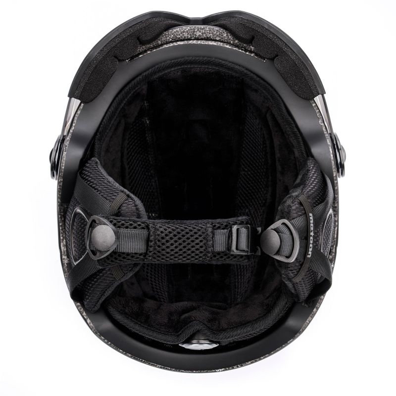 - Kask posiada zintegrowane nauszniki oraz wyjmowaną antyalergiczną wyściółkę, co gwarantuje bardzo komfortowe użytkowanie.