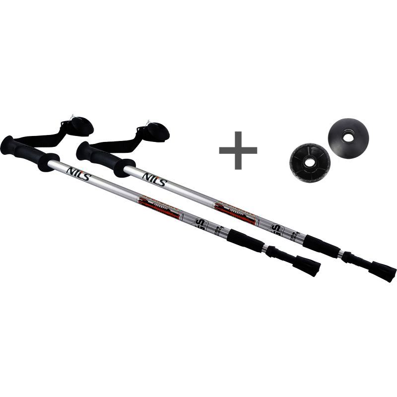 - dodatkowe końcówki: TAK dwie gumowe nakładki do marszu po asfalcie, dwa wymienne talerze do miękkiego podłoża