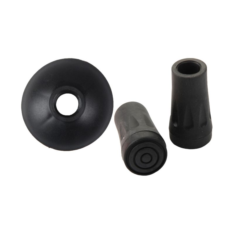 - Kije są wyposażone w wymienne groty, dzięki czemu dostosowują się do różnych powierzchni i zapewniają przyczepność.