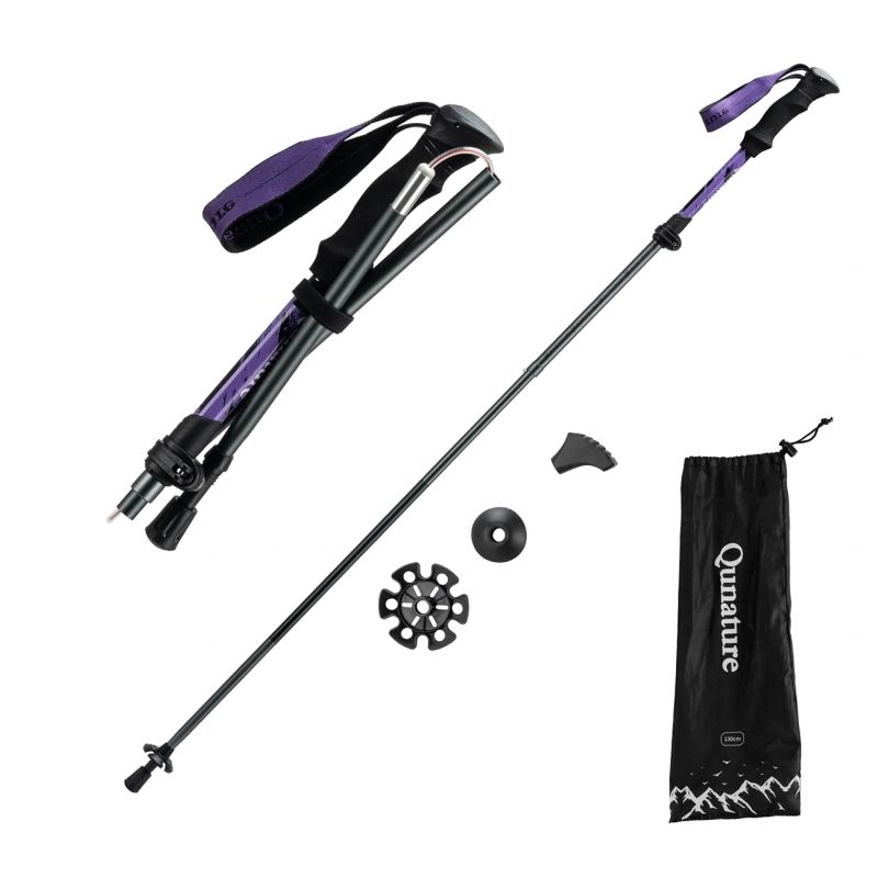 - Dodatkowe akcesoria: W zestawie końcówka ochronna, talerzyk przeciwśnieżny/błotny oraz nadrukowane logo Qunature nadają kijkom nowoczesny, sportowy wygląd.