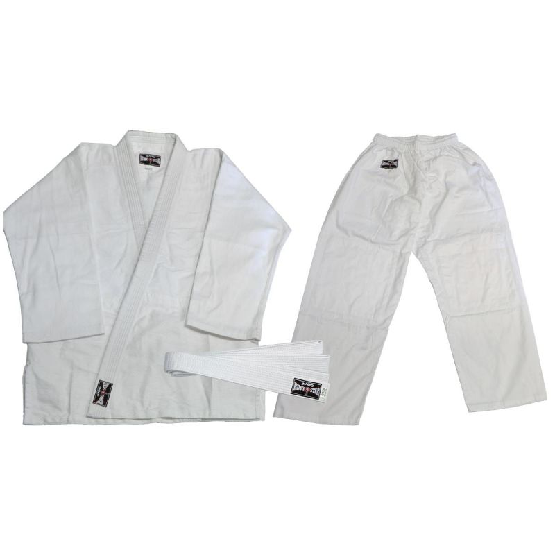 Klasyczne białe kimono Judo wyróżnia się trwałością i odpornością na uszkodzenia. Strój uszyto w 100% z bawełny w oparciu o tradycyjny, uniwersalny fason. Bluza ma wzmocniony kołnierzyk, spodnie są na gumce i posiadają biały pas. Zyskujesz wygodę i idealne dopasowanie.